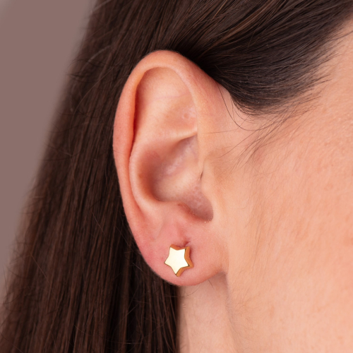 18K PENDIENTES ORO AMARILLO ESTRELLA LISA 8X8 MM. CIERRE PRESION 0
