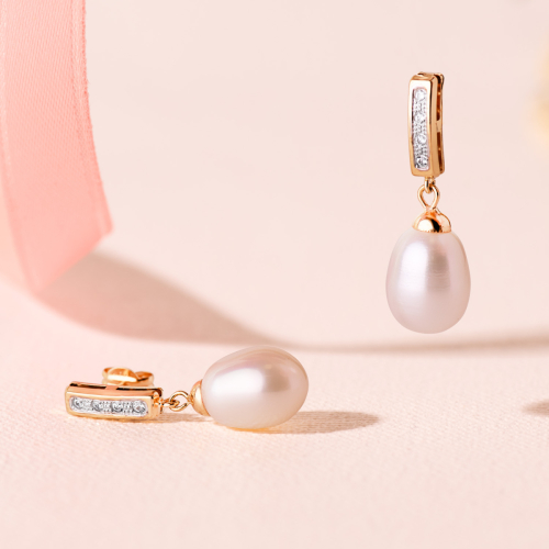 18K PENDIENTES ORO BICOLOR DOS CUERPOS CON PERLAS Y CIRCONITA 25 X 9MM PRESION 0