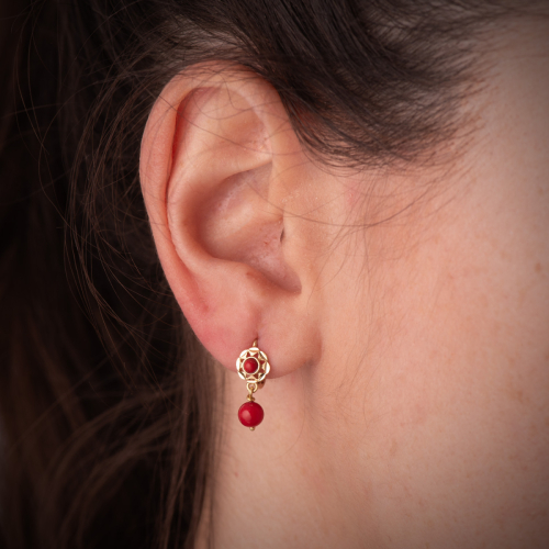 18K PENDIENTES ORO AMARILLO FLOR Y PERLA 10X10 MM CIERRE CATALAN 1