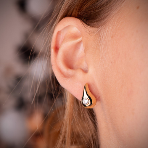 18K PENDIENTES ORO AMARILLO GOTA CON CIRCONITA BRILLO HUECA 16 X 9 MM. CIERRE PRESION 2,31gr