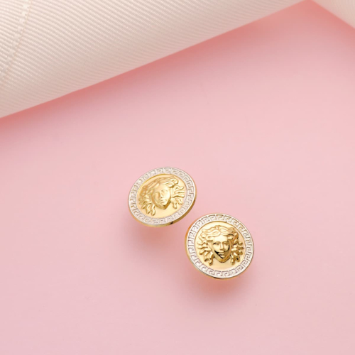 18K PENDIENTES ORO BICOLOR MEDUSA Y BORDE DE GRECA 12 MM CIERRE PRESION 0
