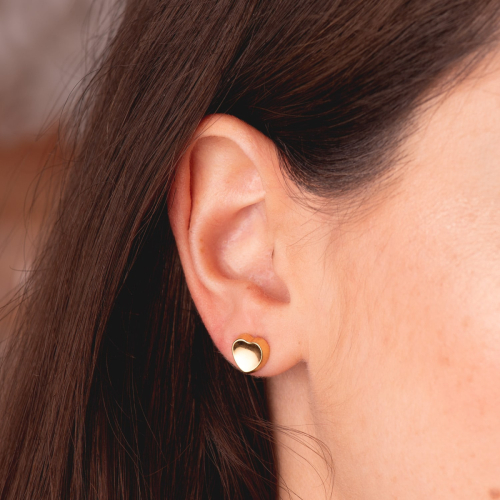 18K PENDIENTES ORO AMARILLO CORAZON CONCAVO EN BRILLO 8X8 MM. CIERRE PRESION 0