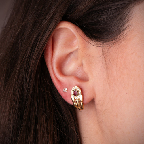 18K PENDIENTES ORO AMARILLO PANTER CON RUBÍ Y CIRCONITAS. 16 X 8 MM. CIERRE CATALAN 2