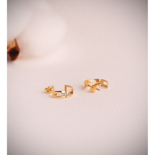 18K PENDIENTES ORO BICOLOR BANDAS CON CIRCONITAS CARRIL. MEDIDA: 16X7