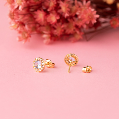 18K PENDIENTES ORO AMARILLO REDONDOS CON CIRCONITA BLANCAS. ANCHO: 6