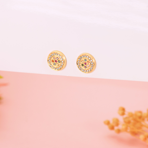 18K PENDIENTES ORO AMARILLO REDONDOS CON CIRCONITA MULTICOLOR 9 MM. CIERRE PRESION 0