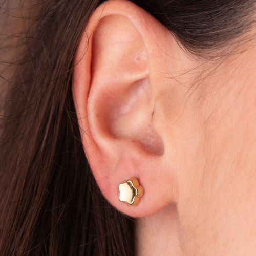 18K PENDIENTES ORO AMARILLO FLOR PETALOS 8X8 MM CIERRE PRESION 0