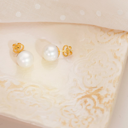 18K PENDIENTES PERLA AUSTRALIANA ORO AMARILLO 11.5-12 MM CIERRE PRESION 1