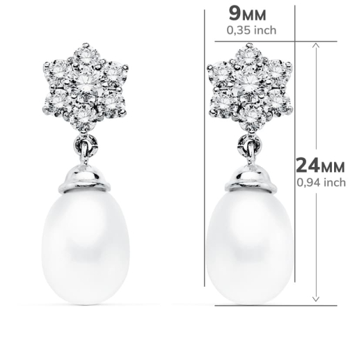 18K PENDIENTES PERLA ORO BLANCO 24X9 MM CIERRE PRESION 2
