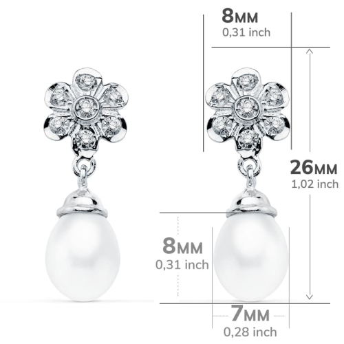 18K PENDIENTES ORO BLANCO PERLA 23X8 MM CIERRE PRESION 2