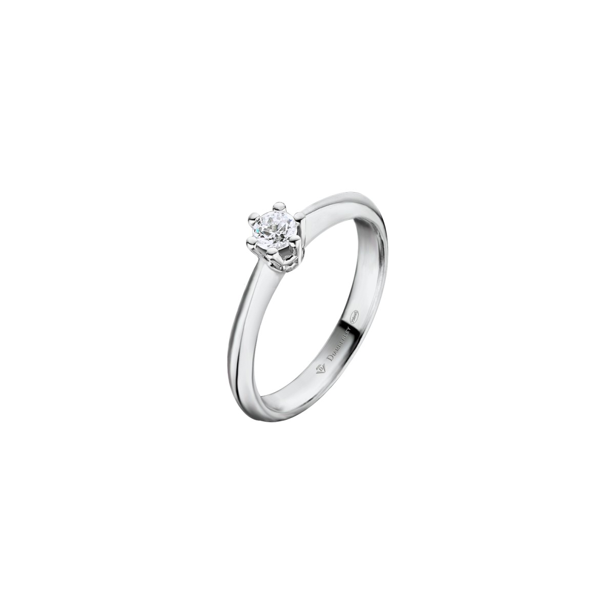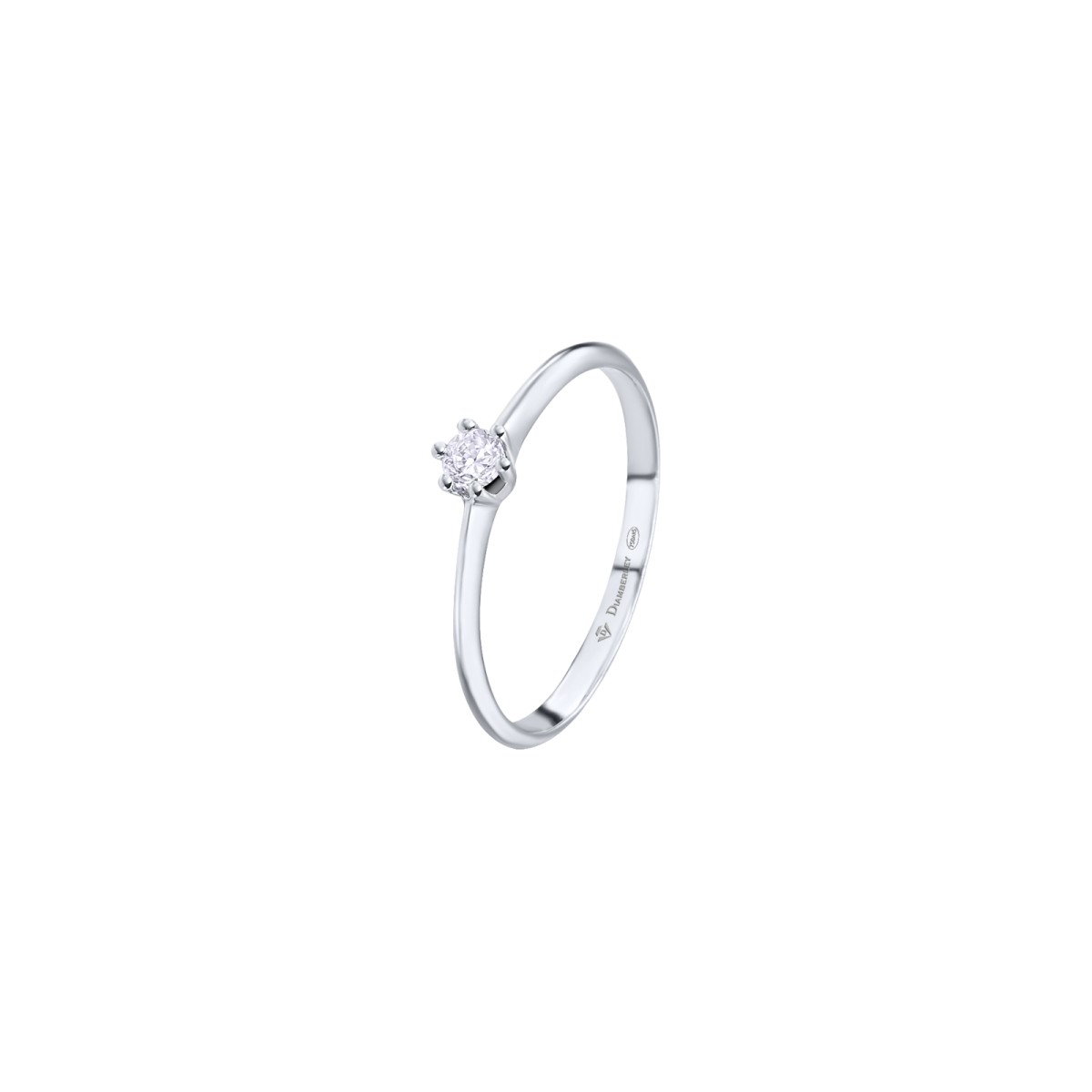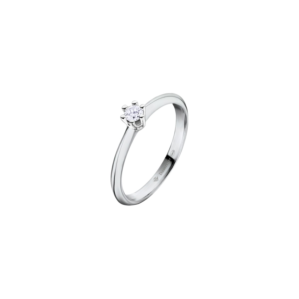Clásico Solitario de Compromiso en oro blanco pulido de 18 kts. La joya tiene un diamante central talla brillante engastado en 6 garras con un peso de 0,08 ct.,0.10 ct,0.15 ct.0.20 ct.0.25 ct.0.30 ct.0.35 ct.