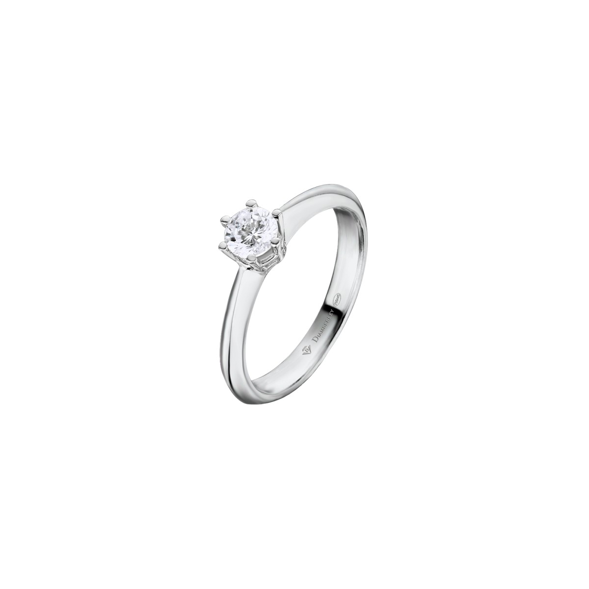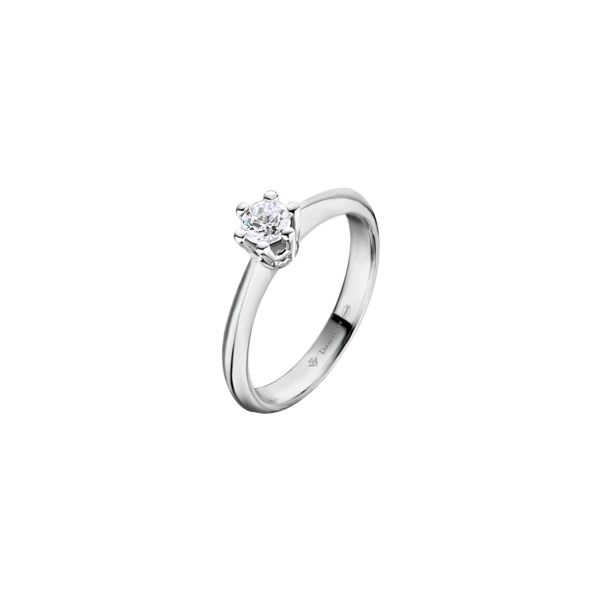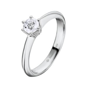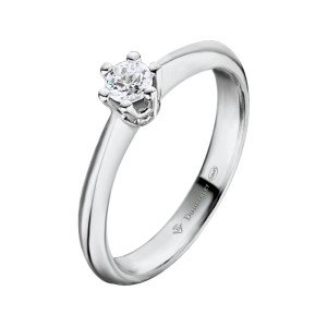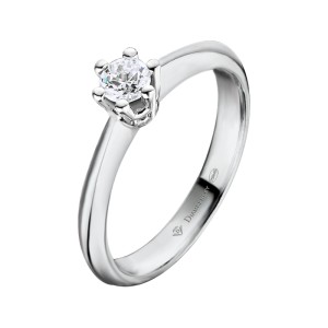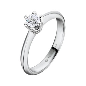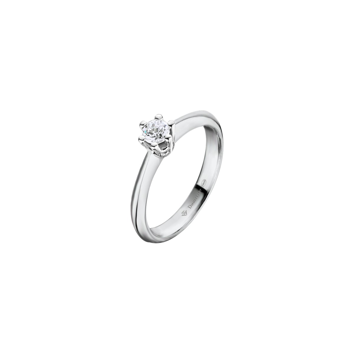 Clásico Solitario de Compromiso en oro blanco pulido de 18 kts. La joya tiene un diamante central talla brillante engastado en 6 garras con un peso de 0,08 ct.,0.10 ct,0.15 ct.0.20 ct.0.25 ct.0.30 ct.0.35 ct.