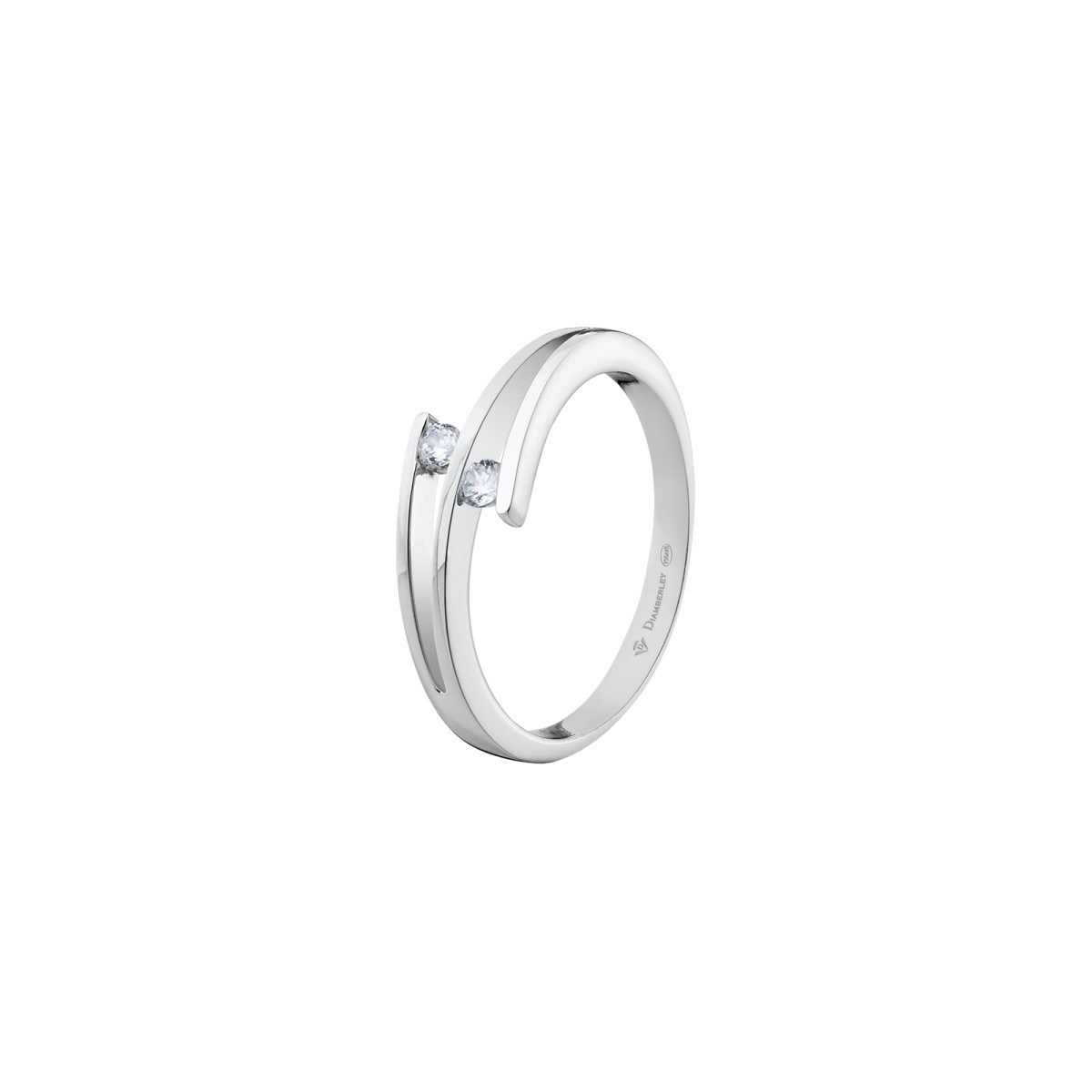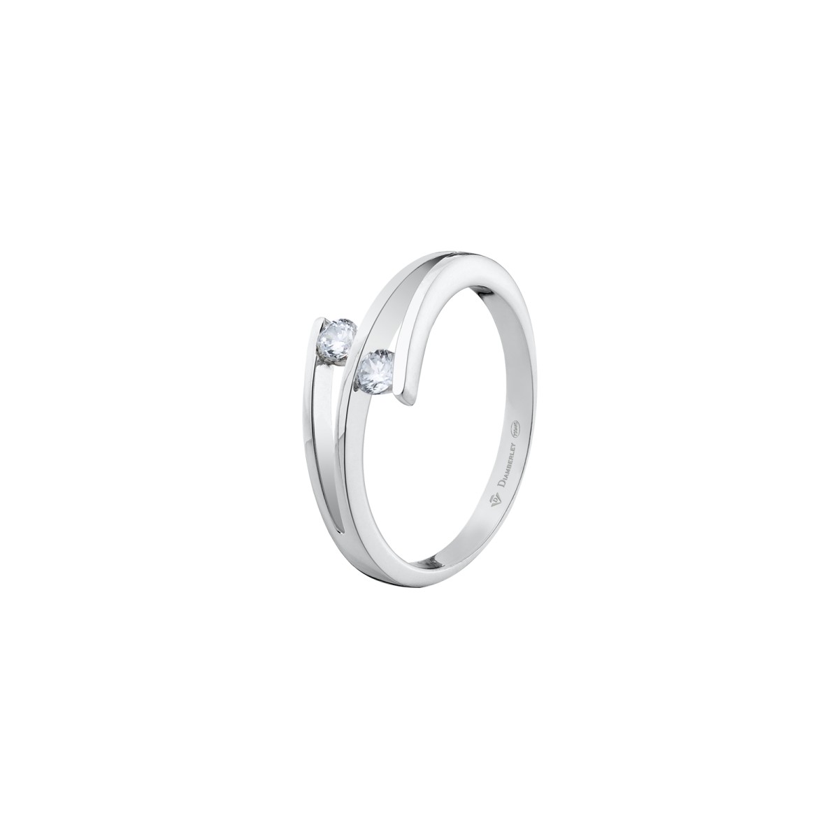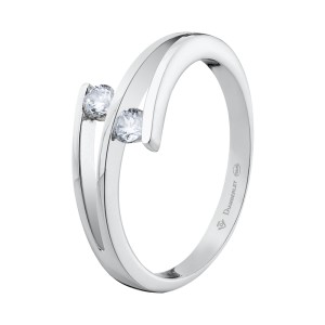 Anillo de diamantes de diseño moderno fabricado en oro blanco de 18 kts con diamantes talla brillante de 0.07 ct.,0.08 ct,0.12 ct,0.20 ct(total)